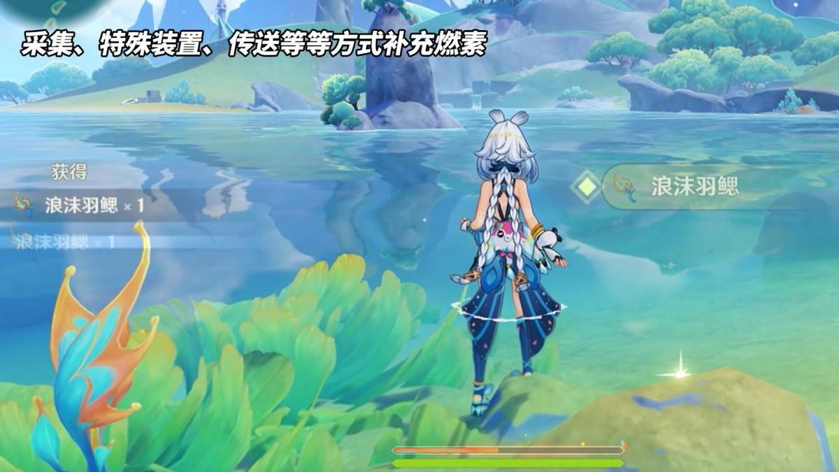 倘若是在纳塔环境,玛拉妮可通过消耗燃素值额外延长冲浪板持续时间,并且此时水面消耗降低75%(冲刺持续时间超过半分钟)。补充燃素值方式很简单,纳塔地图内各种装置、玛拉妮天赋拾取采集物、传送等等~