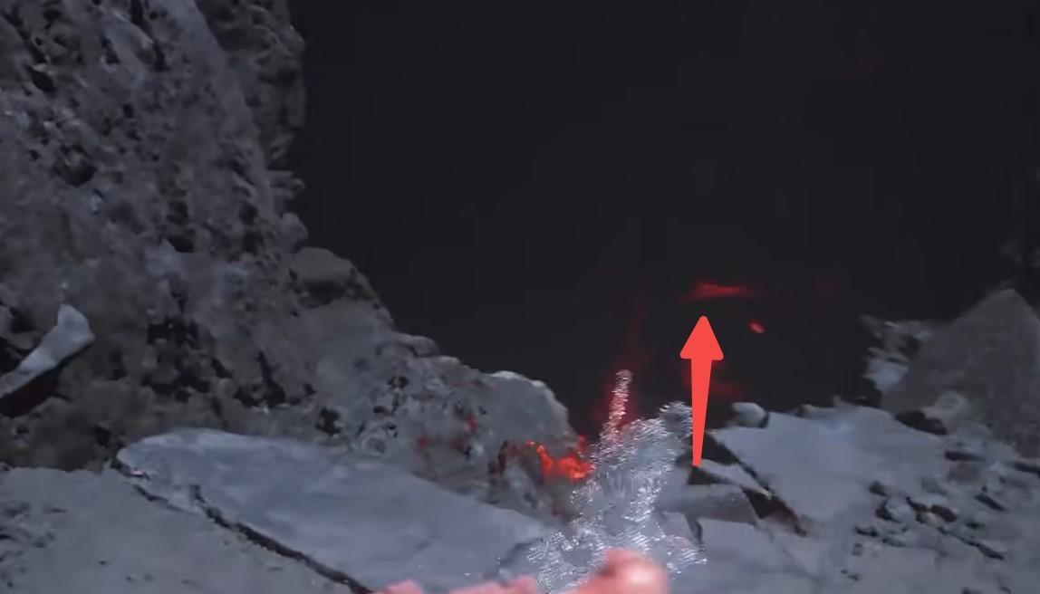 遇到石灯后右转向下走,在左边缺口处跳下。
