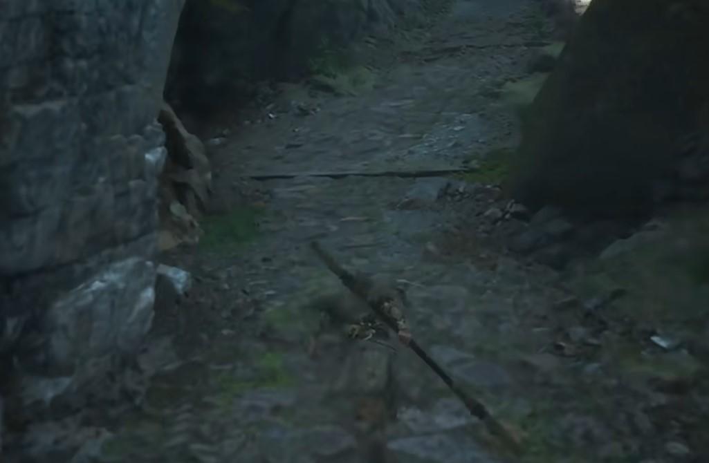 走到尽头后左转上石梯。