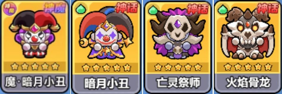 禁锢队,顾名思义是以控制为主,输出为辅的阵容,因为魔·暗月小丑的强势加入,这个阵容终于成型,除了主上毒的亡灵祭师外,其余三个看似输出手段少的可怜,但是在持续的控制面前,怪物的死亡只是时间问题,为了弥补输出真的很低的情况,魔·暗月小丑和暗月小丑完美的充当了增伤的角色,持续不断的易伤buff使输出不再是短板;,控制的核心则体现在火焰骨龙身上,骨龙的范围伤害可以有效的控制周边的每一个怪物,最终成功做到了要输出有输出,要控制有控制的完美效果!