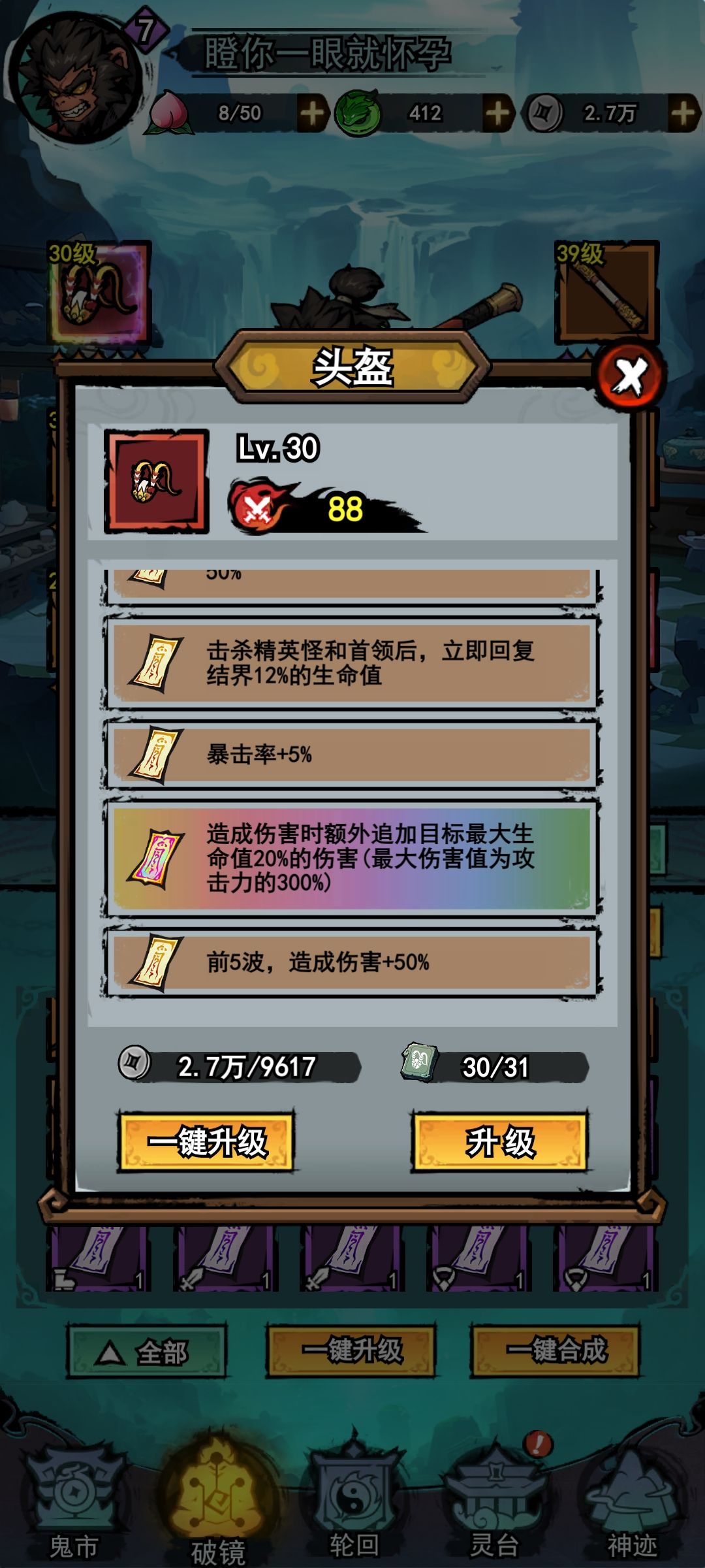 伙伴提升很大,技能多了很多,能出很多伤害!充了50.4元,这个神话符文牛逼