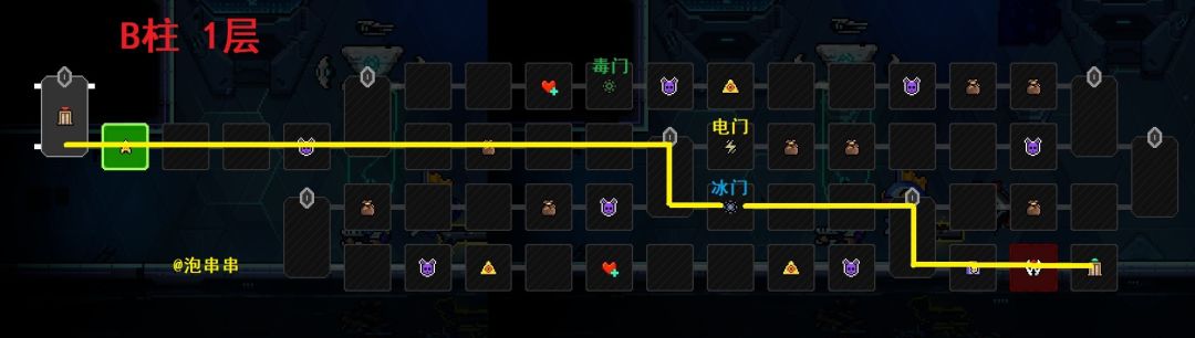 本层吸取2个最低品质,放2个蓝色/绿色品质作为本层祭品。打不开属性门走电门上面那条,时间耽误不了多少,还能打2个boss,完成一下B2矩阵杀boss的任务。