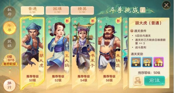 ①斗兽挑战3星、秘府挑战胜利可获得全新道具“捉妖袋”;