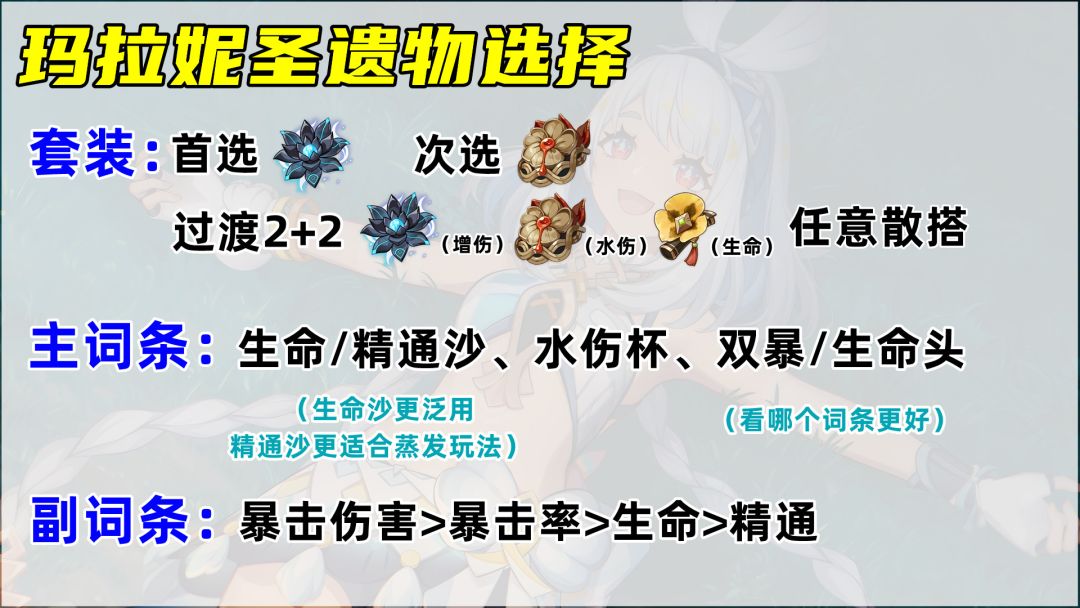 原神:玛拉妮培养攻略,圣遗物武器配队选择