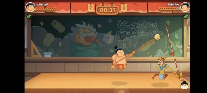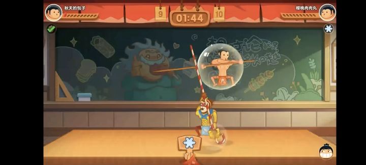 滑动屏幕,控制你的小角色,拿着小戳子,把美食挑起来,然后“嗖”的一声,喂到对方嘴里,
