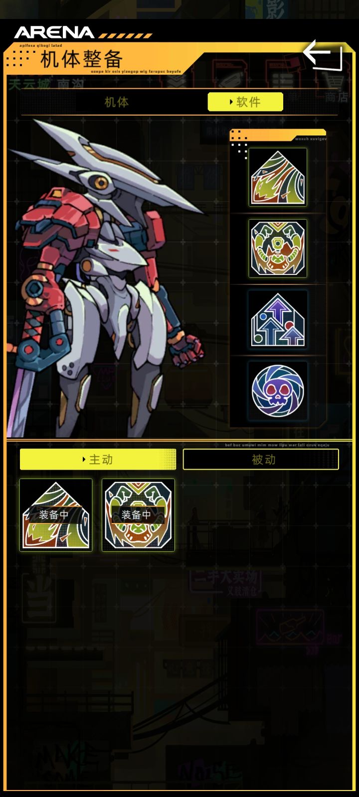 2.电磁脉冲+重击+超频连打+进攻倾向(该搭配需要电量高,充电速度快,不然碰到攻速高的对手会有被反攻的概率,最基础也得有武士电池才能用,适合老手,感谢评论区大佬分享) 购买点:暗巷—角斗场—商店—软件