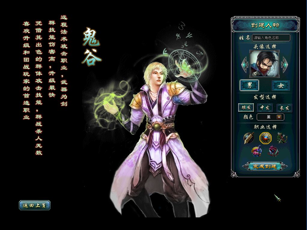 游戏职业共分为5个,分别为鬼谷、御翎、刺客、妖姬、擎天。鬼谷、御翎是属于远程输出职业,拥有群体输出的优势;刺客则拥有出众的PVP能力;妖姬拥有团队辅助治疗的能力,其治疗能力是无可替代的。擎天的有吸引仇恨技能和防御天赋,担任着团队的抗伤和控制角色,同时也有不俗的输出天赋能力。玩家可根据喜好和需求选择职业。