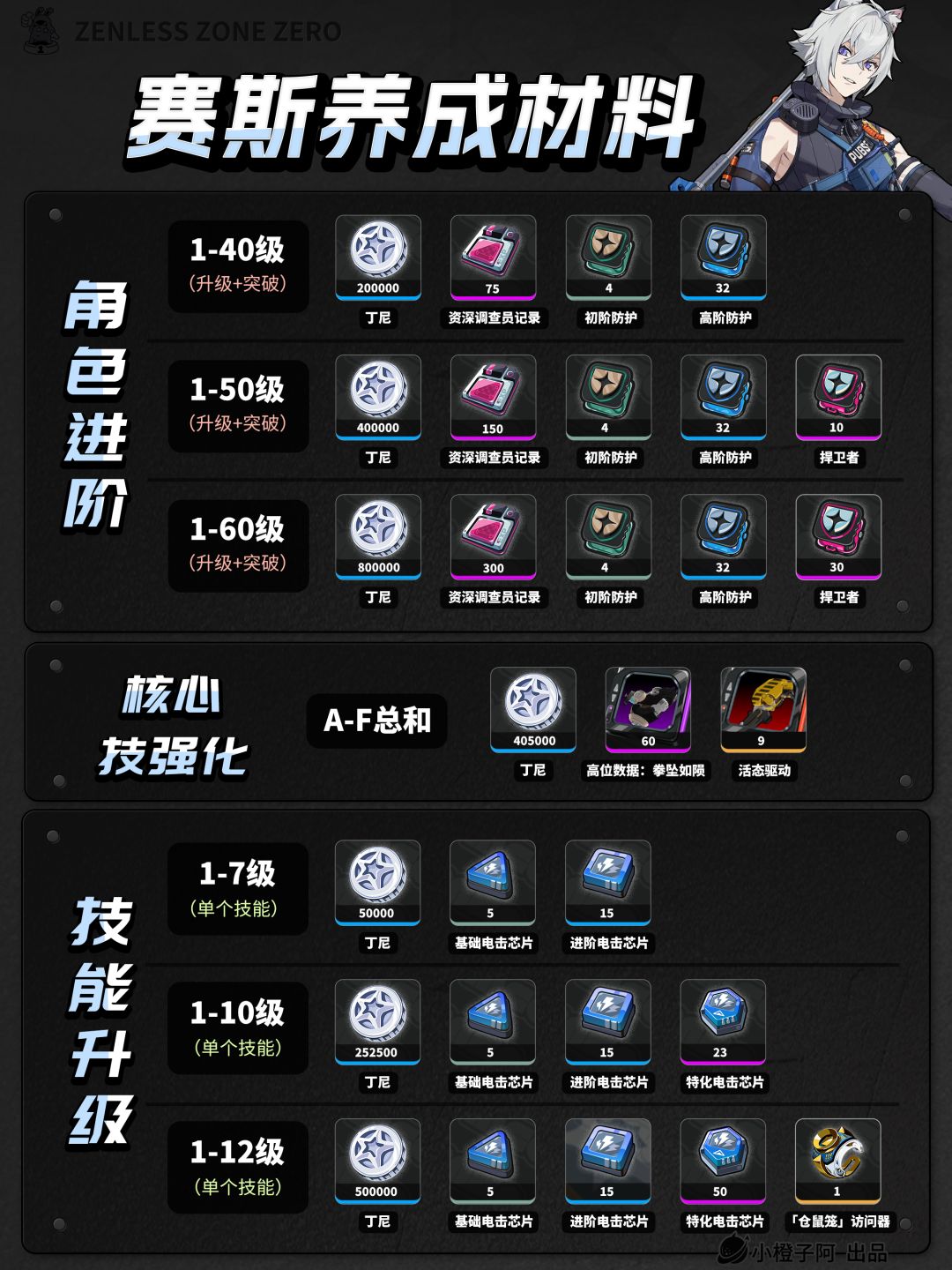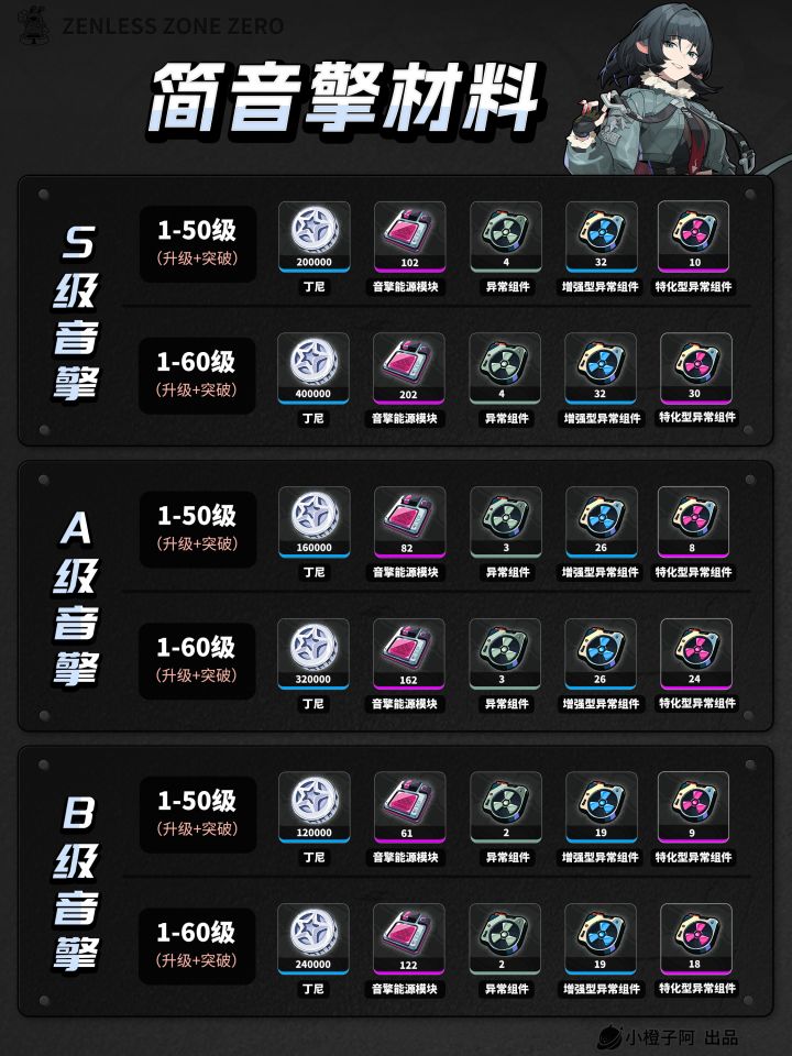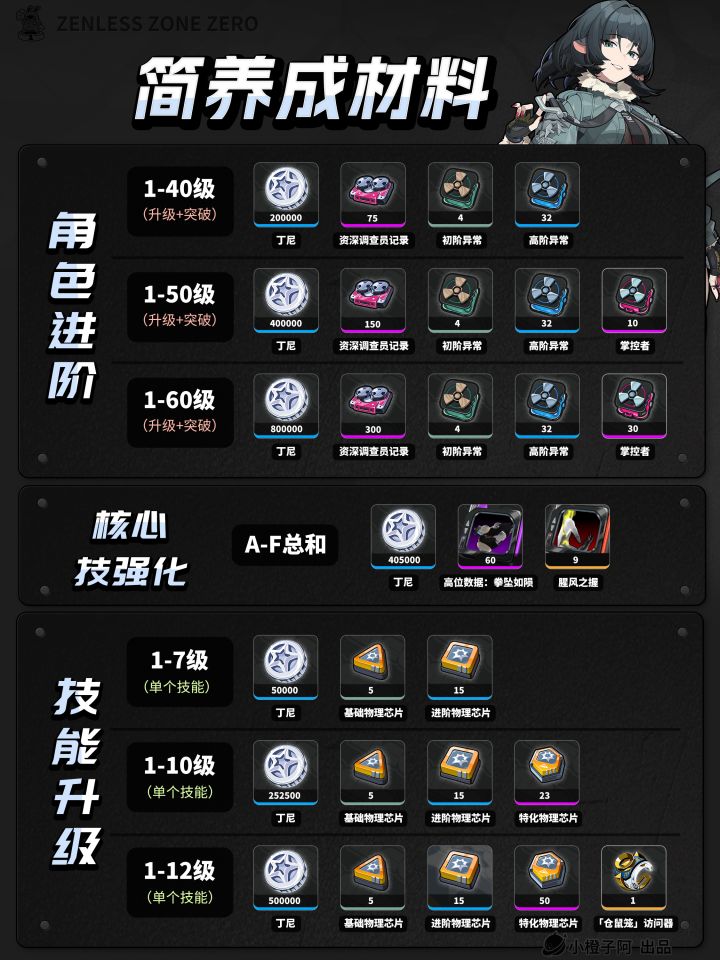 绝区零丨简/赛斯角色+音擎丨养成材料统计