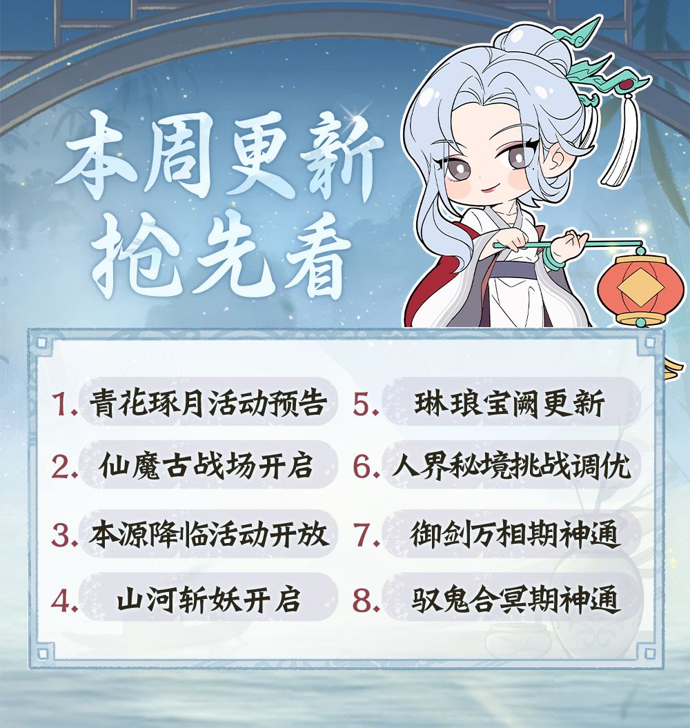 活动将于9月13日~17日正式上线结丹前期对应境界及以上仙友可参与仙友参与其中瓷月同福等活动有机会获取新时装·玉瓷天青等奖励