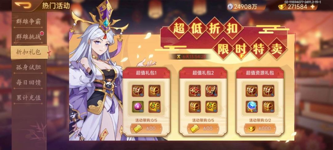 活动内容:活动期间,超值礼包限量折扣出售。