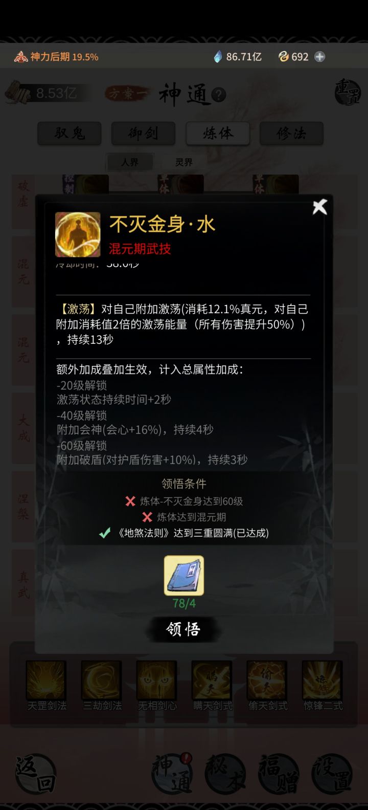 2体修境界不管先修还是后修拉到混元即可不需要在往上修了。(主要是为了那不灭水的buff)
