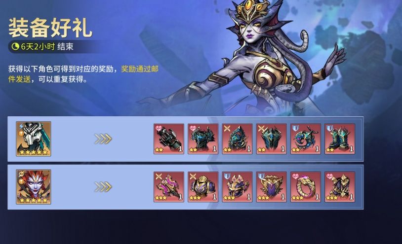 获得卡塔淇拉、阿斯莫德可得到对应的奖励,奖励通过邮件发送,可以重复获得。