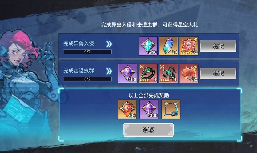 ●完成异兽入侵和击退虫群,可获得星空大礼。