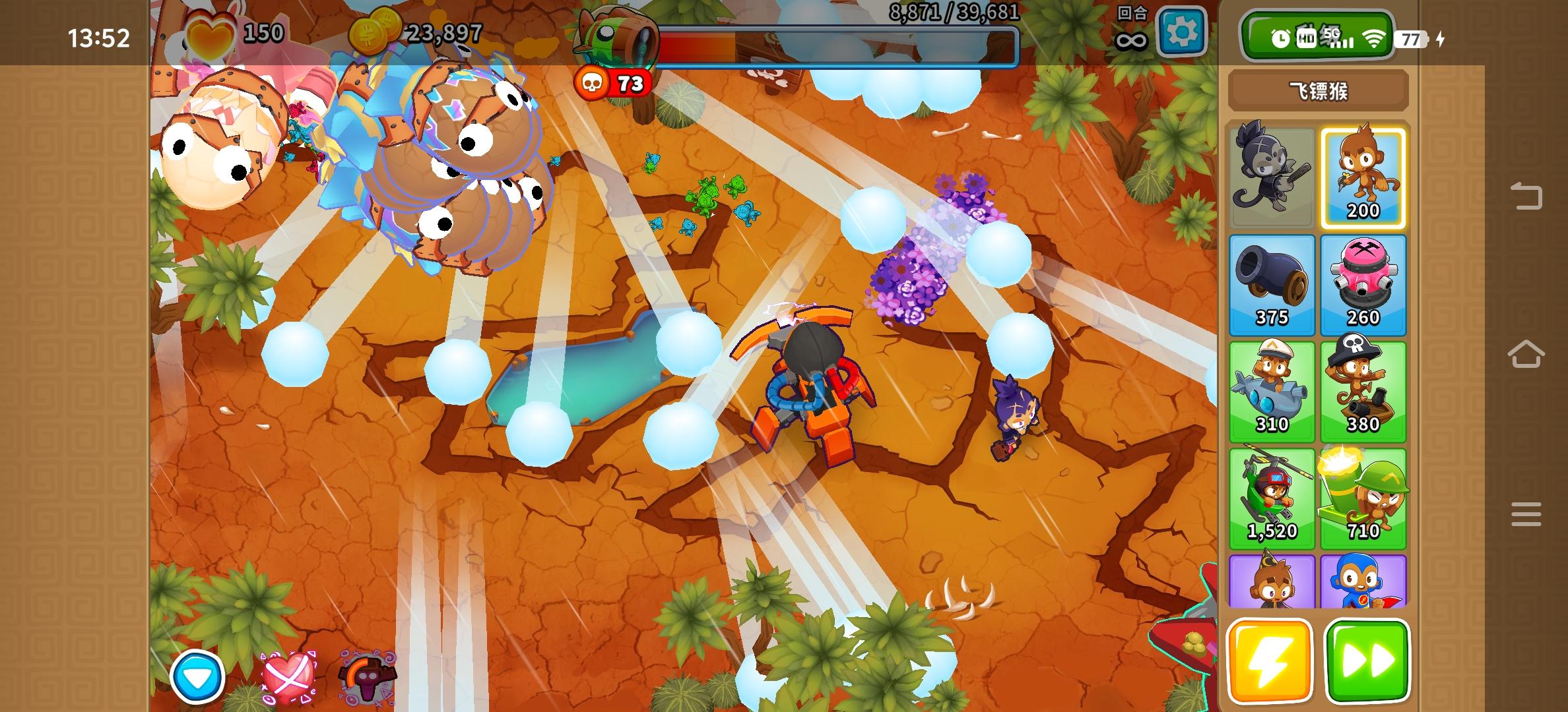 图3,203图钉开,升204,买帕克/艾泽里,补101直升机防冲,攒004忍,挖地买023船,出025毛,升024船,放猴村402,放205图钉,050炮,420炼金+042炼金,520毛,出口放个040毛,余下人口110毛放满,等67波,卖光其它的塔,出毛模,补205直升机防冲,补输出,85分。如果可以优化一下伤害分布,在boss过倒数第二个拐角时打到72波,就可以双025毛+一片230毛,够10模范度,能上95。