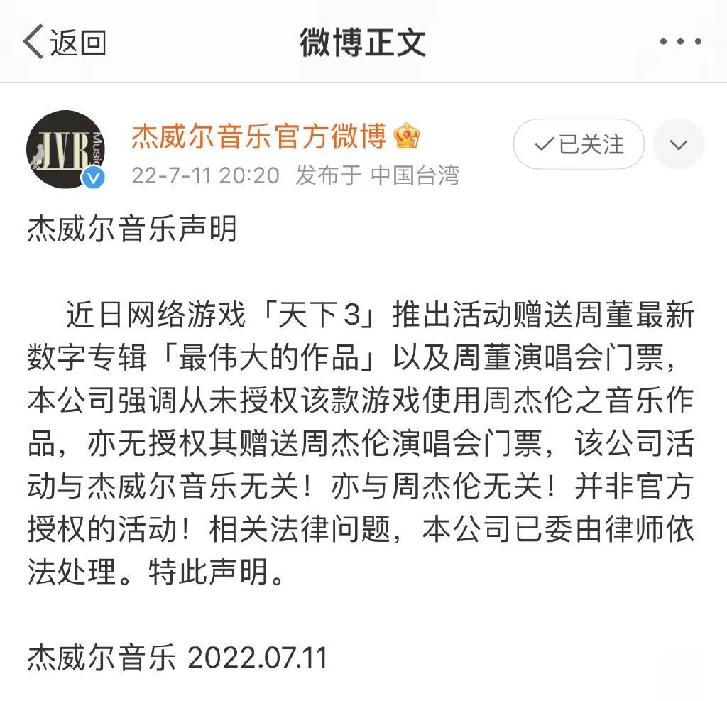 5天后,周杰伦名下“杰威尔”起诉网易侵权