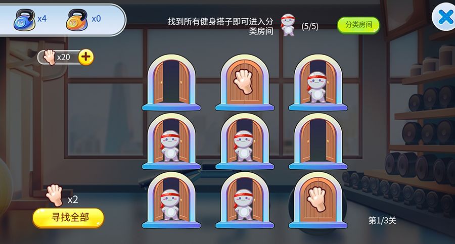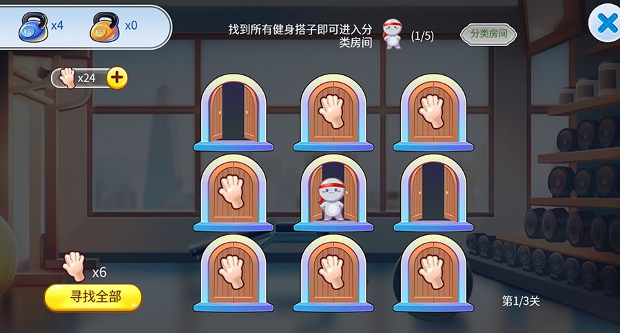 成功凑齐5个搭子,进到分类房间环节获取奖励~