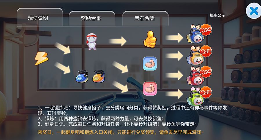 3、领奖日关闭一起健身吧和锻炼入口,大家获取的道具要及时使用完毕;
