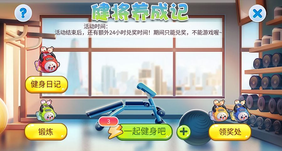 每天来到活动中可收到免费体力,进入主环节:一起健身吧!