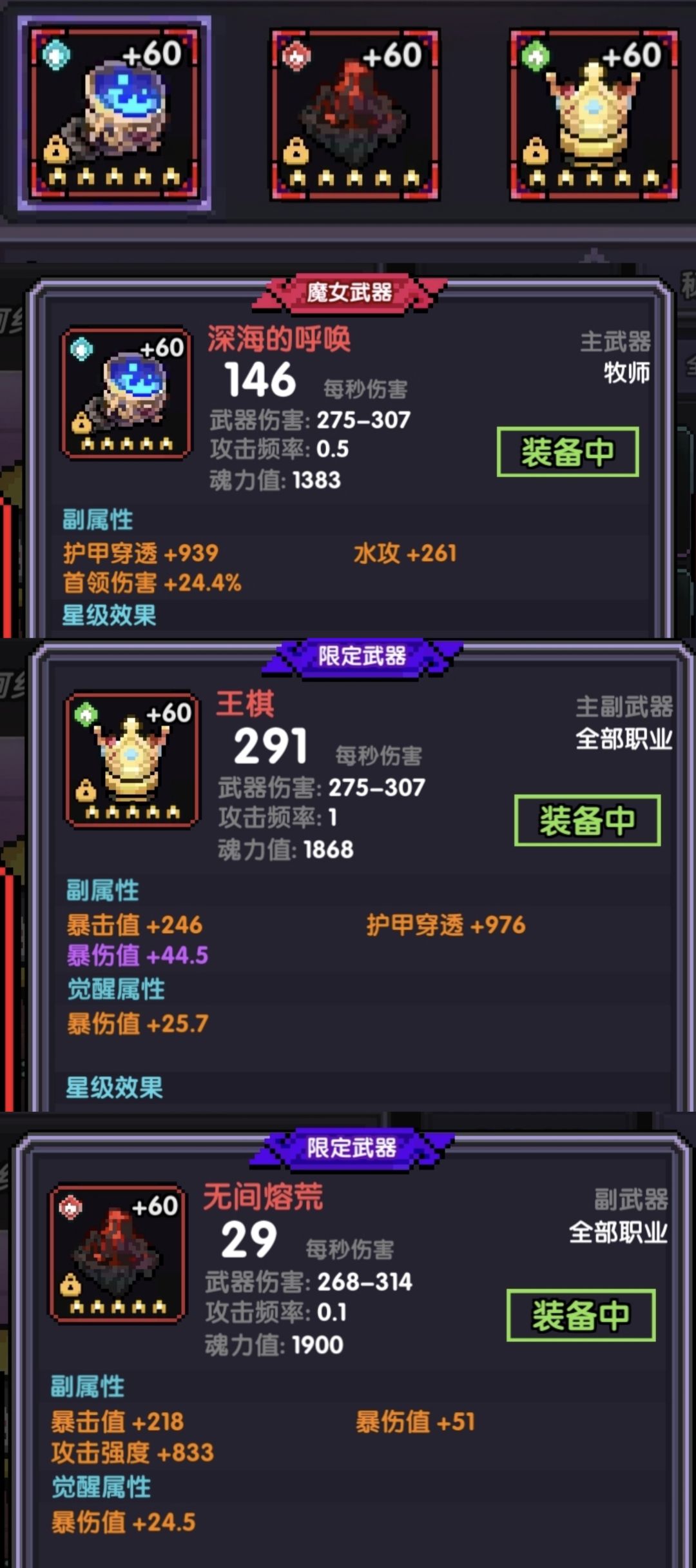 魔女武器:首领伤害、护甲穿透、水攻/暴击值