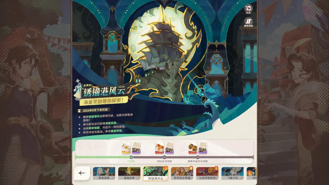 1.由于开服时间不同,各服务器"锈锚港风云"赛季的开启时间会各不相同。具体时间以赛季预告页下阶段的开始时间为准。