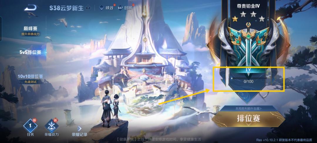 在体验服中,点击进入排位赛界面,可以看到在段位图标下方,新增了一个分值槽,这个就是新增的排位积分。