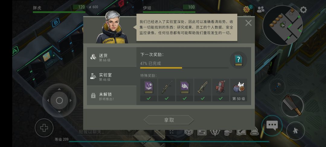 实验室是一个偏后期的副本,它与b堡不同的地方在于较大的随机性(小怪的增益和玩家的增益),因而个人觉得该副本难度高于b堡。同时实验室活动的增益并不像b堡活动增益来的那么直接,仍是需要一定物资基础。