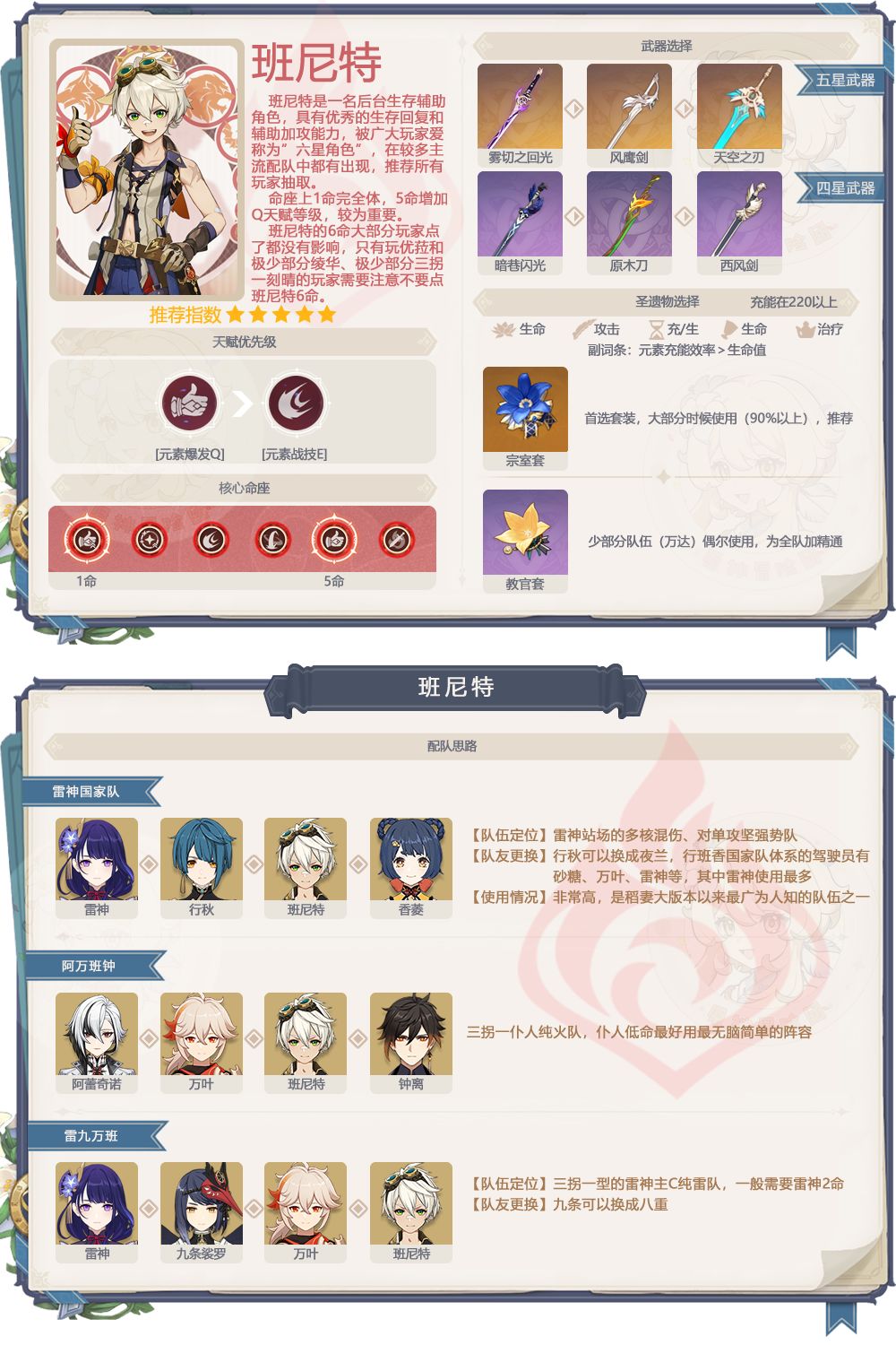 4、班尼特抽取建议:班尼特四星人权卡,1命完整,没有1命捞1命,三四命可尝试捞五命