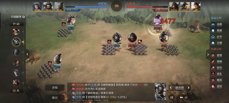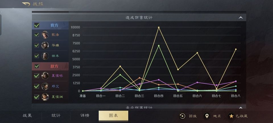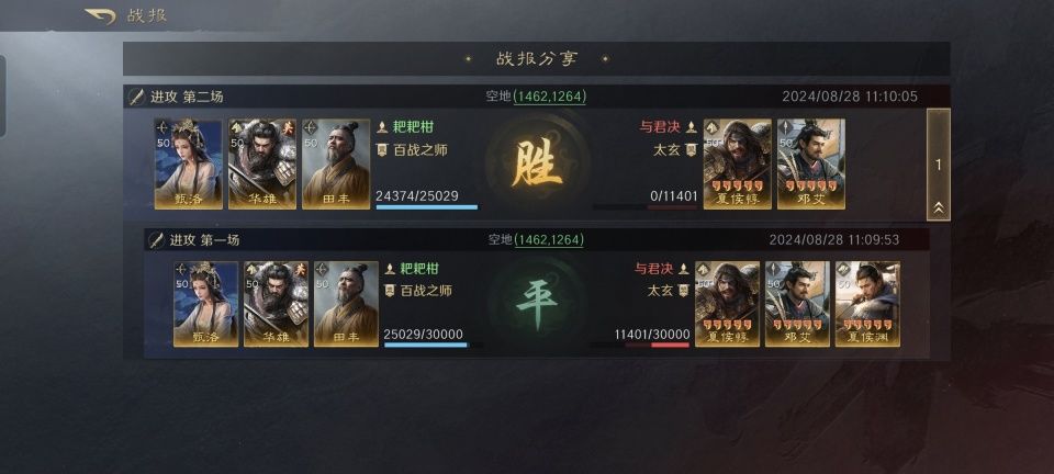 国际惯例,在此特别鸣谢游戏ID名为“耙耙柑”的玩家朋友,为本文提供了宝贵的创作素材。面对着满红的夏侯兄弟加邓艾的组合,耙耙柑这边全白板的甄洛、话本华雄和田丰摆出了锥形阵。为了吃到伤害加成,话本华雄被安置在了前排,甄洛和田丰则是在后排打辅助。只用了四个回合,对方的核心输出夏侯渊就被话本华雄给击溃了,这效率相比起定军山下的黄忠也是有过之而无不及!具体的筹谋如何,且看下文分解!
