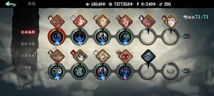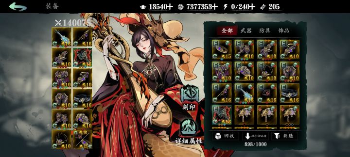 然后就是装备刻印 武器可以刷天道真伤 裤子可以杀气护体有破甲1.5s霸体 鞋子灵燕暴击不生效可以换月光了 灵燕基础属性进去自带