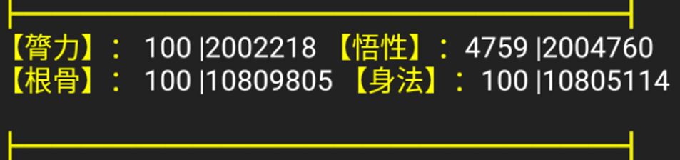 - 测试号属性:转世次数:82万转,《太玄经》等级:2360级