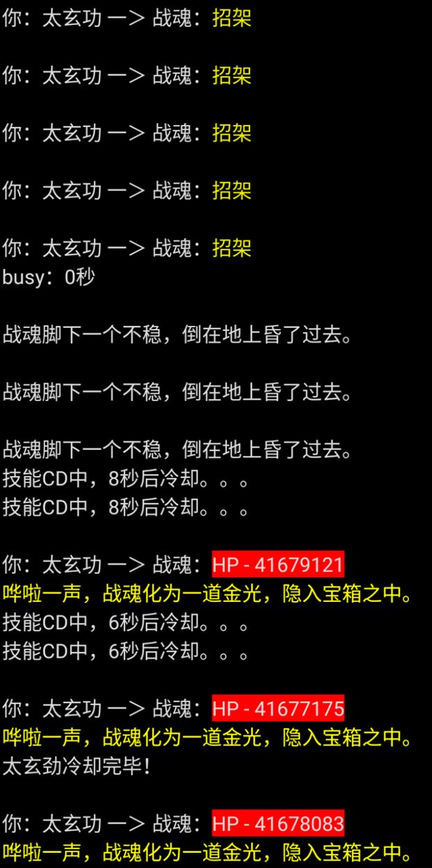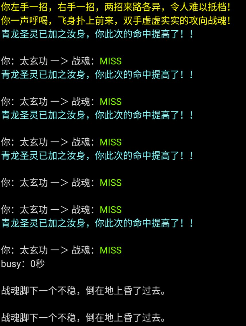 - 《太玄功》普攻出手快,命中高,技能搭配太玄劲,可无busy打出6连击,连击命中率高,通过高先手高连击叠伤害秒杀命魂。采用本法可轻松先手并命中击败战魂,单局挑战时间约3分钟左右。