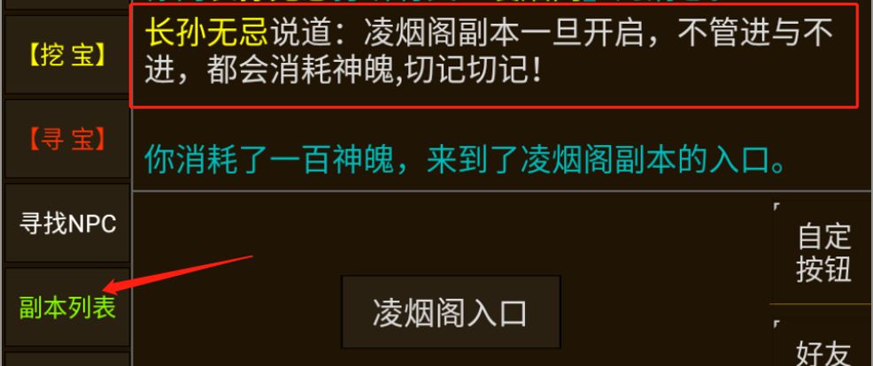 - 注意,进入副本之后不要点击凌烟阁入口,该入口其实是出口,点击后会传送至武庙,副本作废,无法再次进入,损失一轮神魄。