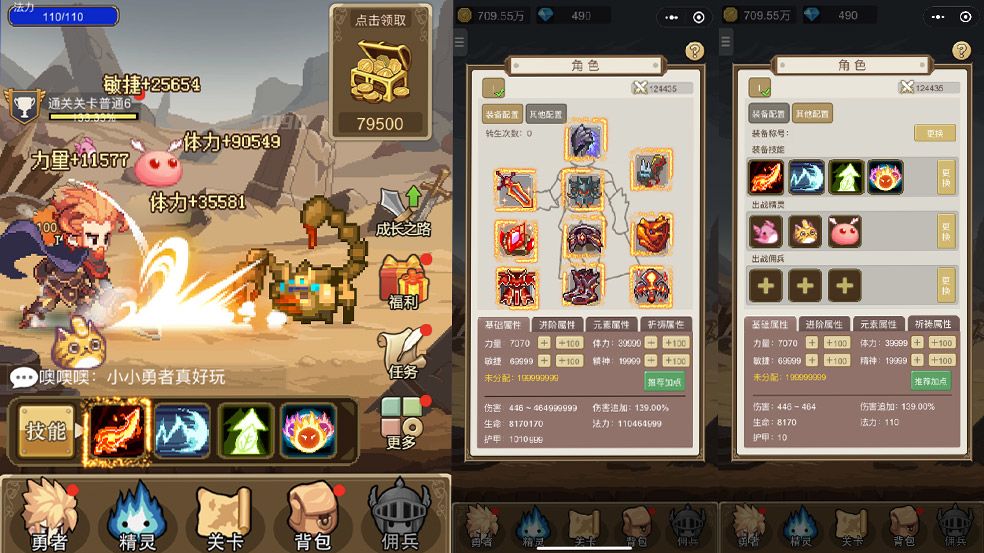 就这样一点一点的积累,原本过不了的关卡,今天上来看一下,消耗资源养成一下,发现终于能过了,小小的成就感带来的简单的快乐,就是我们追求的游戏乐趣——因此,我们希望每一位玩家,都能在《小小勇者》的游戏世界里感受到这份乐趣。
