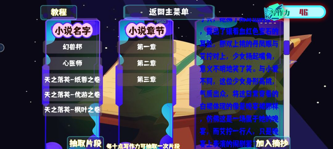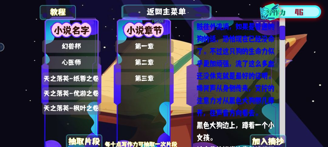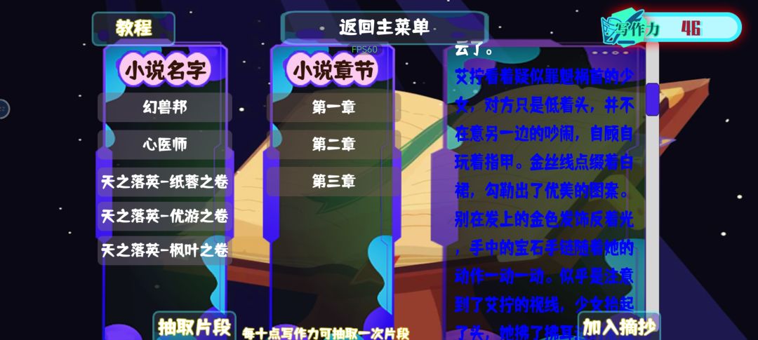 看了看第一章,逻辑挺尴尬的,纯写外貌200字真的没必要,也很难衔接...果然写东西好难,以及错字很多也不能改,里面写的内容写完后也不能复制,联系那边的记录看个剧情就没了,里面的游戏剧情也有点()古早。评价是游戏性挺低的