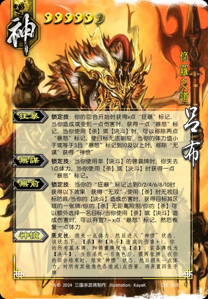 原本想做刘备的,但是龙怒不知道怎么改,所以现在就把吕布做出来,刘备做了个比较特殊,想看的话,可以看我另一个帖子我的神将加强计划重置版