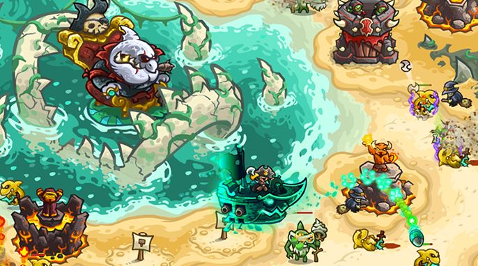 为了帮助你的征服,我在被贪婪战士驻守的巨魔沉船塔上安置了军队。你将会有无畏的幽灵船长Lucerna在你身边,让那些卑鄙的假冒者走上悬崖!