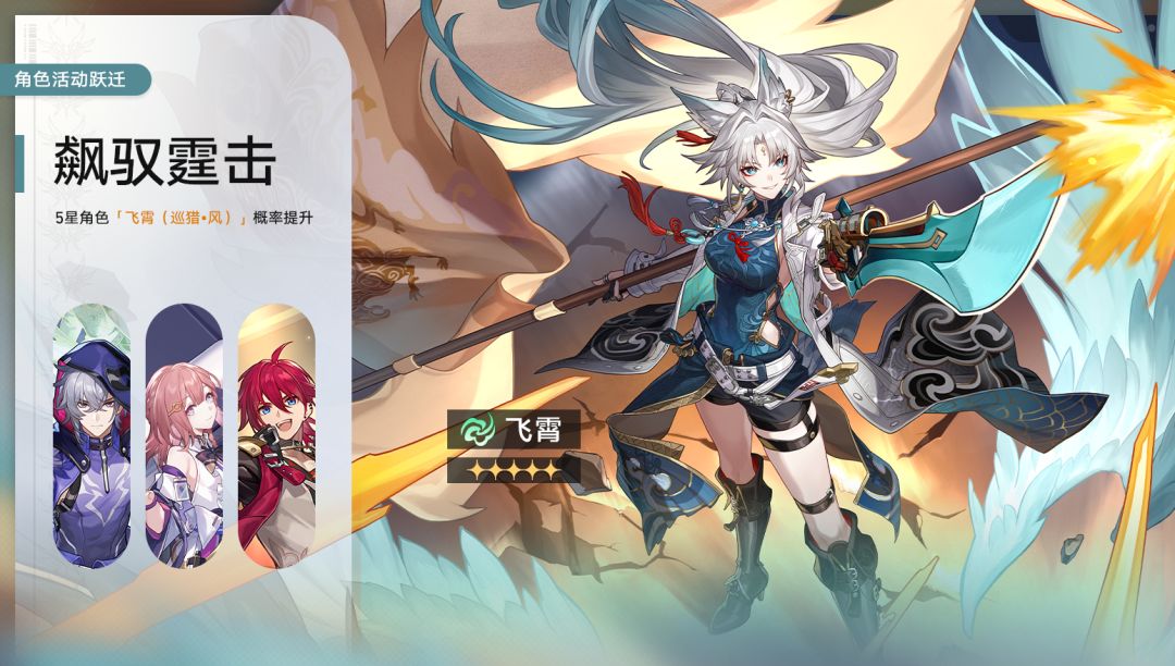 ※活动期间,限定5星角色「飞霄(巡猎•风)」仅可在「飙驭霆击」角色活动跃迁中获取。
