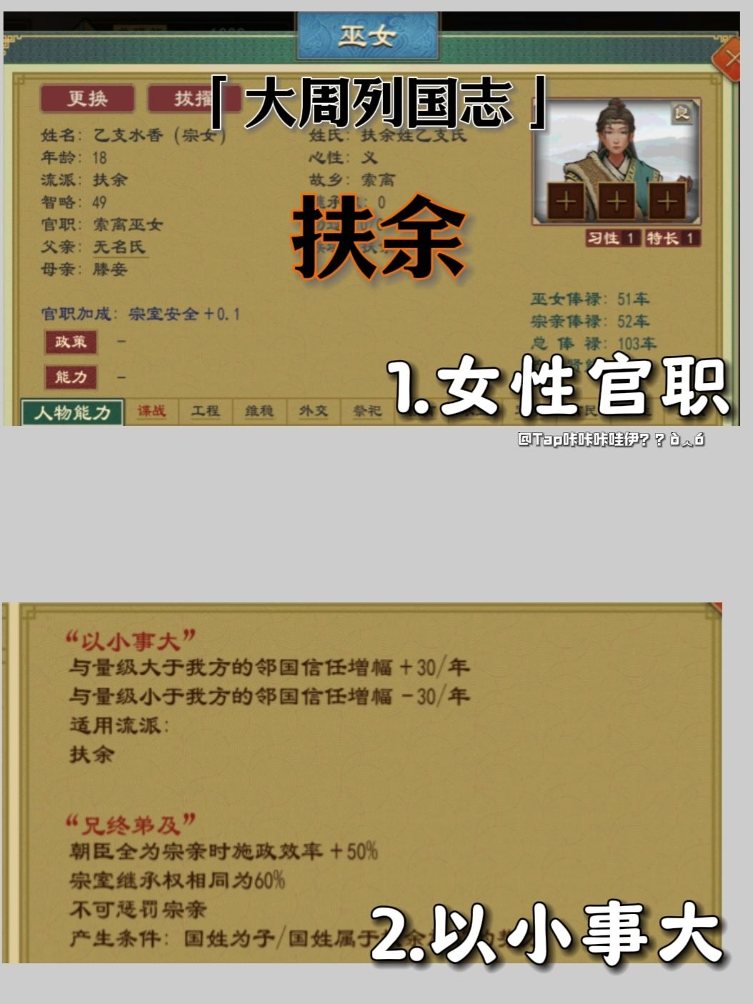 2.以小事大(这个确实算有稀有度的唯一异族buff,但说句不好听的,也可以称呼为“欺软怕硬”,讨好强国有利于破局,无视弱国可以反手灭掉)