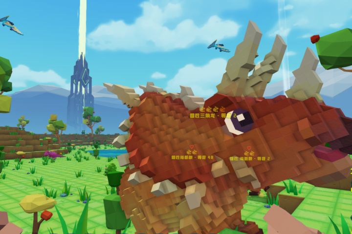 这里我介绍一款酷似方舟的游戏--方块方舟。听着名字不难猜出这个游戏跟方舟有着联系。可以把方块方舟理解为方块版本的方舟生存进化,在方块方舟中所有的模型都是由方块构成的,所有方舟生存进化中的恐龙在这里都有,比如大家熟悉的帝王鳄鱼、副栉龙、雷龙、梁龙、迅猛龙等等,不过构成各种动物模型的方块明显比较多,看地形和建筑物可以明显看出采用了我的世界的方块风格。