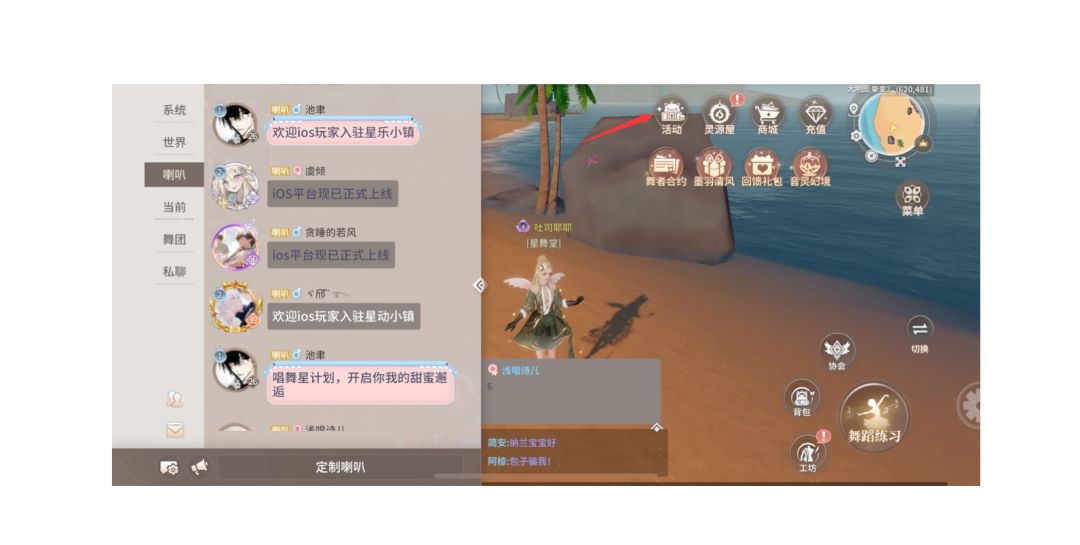 直接在活动界面用喇叭喊三句话:ios平台现已正式上线