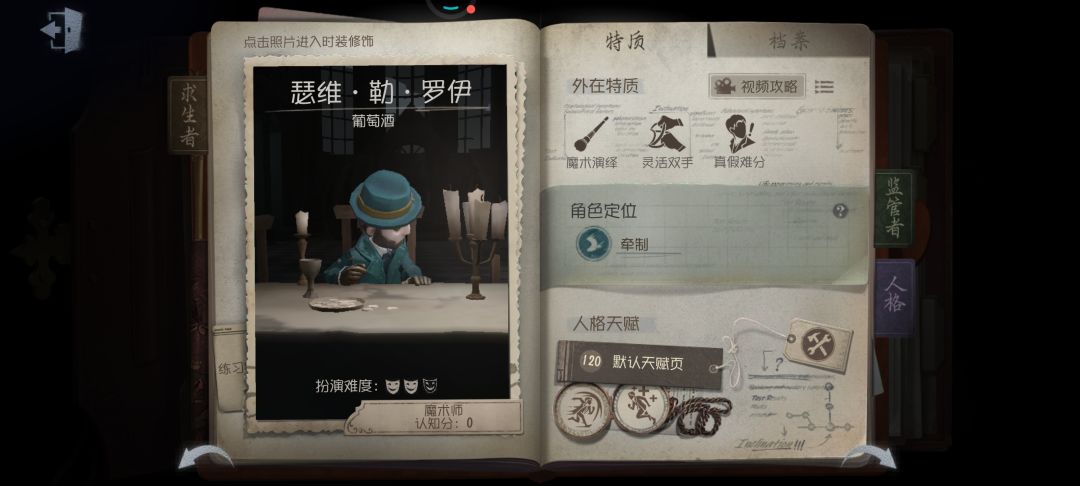 很多时候你以为在解码的是他,其实是他的幻影,或者你以为他在某个拐角蹲着的,其实也是幻影,是个操作起来不缺想象力的角色。魔术师最大的优势在于集解码和溜屠夫两项buff加成。“灵活双手”增加解码速度和校准操作判定范围,自带的魔棒技能不仅能制造幻影,还能在释放后隐身一段时间且加速30%,一个技能三个效果,估计这就是第五人格的亲儿子吧。魔术师的弱点主要在于操作上,如何把握释放技能时机,如何在隐身加速时甩开屠夫都是需要不断实战积累经验和手感的,一旦掌握魔术师的玩法,那就是目前最好用的人物。