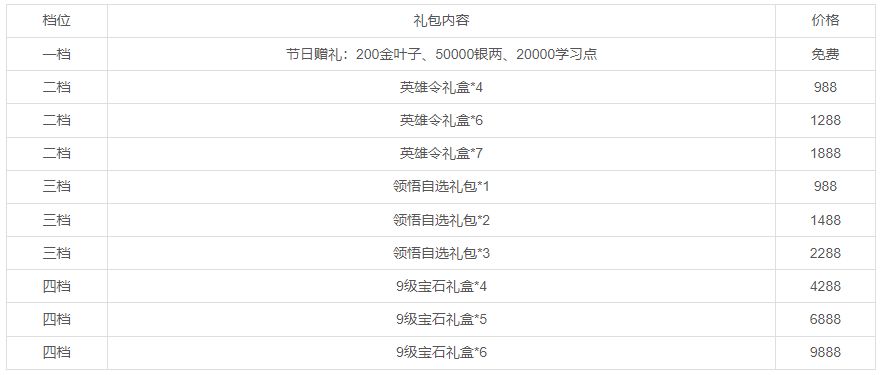 活动一:活动期间将限时上架节日礼包,礼包内容如下: