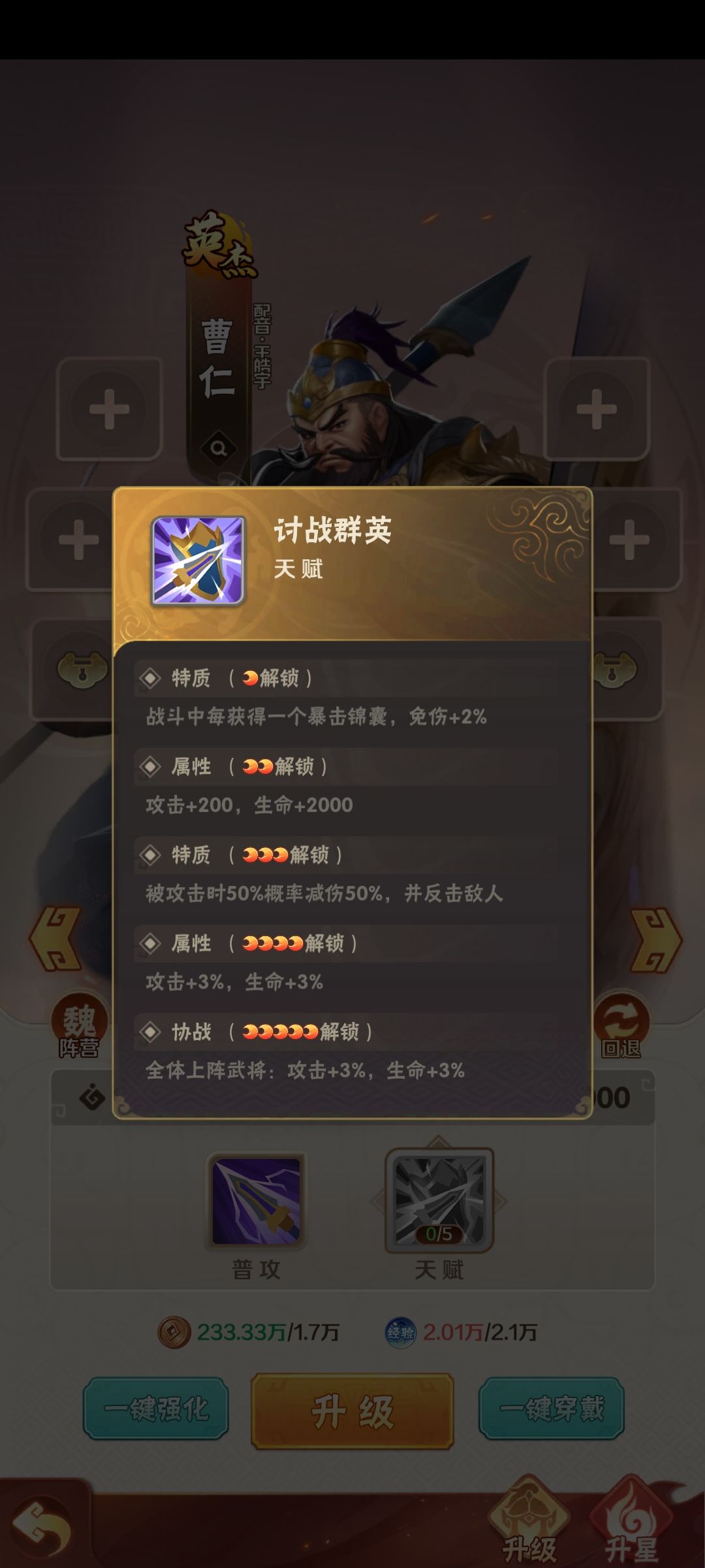 3.不用的将不要随便当材料了 高星的奖励很可观 等豪杰全10星了再当材料 无双建议不要当材料 卡关了特别急的除外