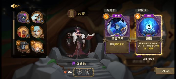 牌组:魔铜项链一定要多拿,并打上保留符(这可能是最好用的盾牌了),援护(保命),召唤牌,过牌,加崇拜的