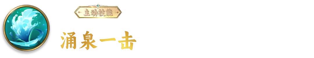 主动技能【涌泉一击】,战斗中每隔一段时间,使所属部队在接下来的数秒内攻击力提高,防御力提高。