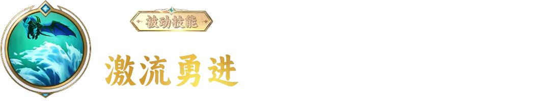 被动技能【激流勇进】,所属部队受到夹击时,使其普通攻击免伤提高,且每秒有一定概率使正在与所属部队交战的数个敌方单位怒气降低,该效果短时间内最多触发一次。