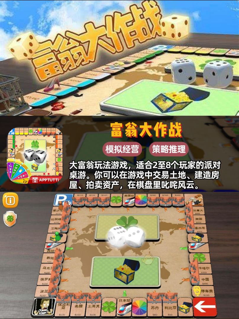 大富翁玩法游戏,适合2至8个玩家的派对桌游🎲。你可以在游戏中交易土地🏠、建造房屋🏢、拍卖资产💰,在棋盘里叱咤风云。🌪️