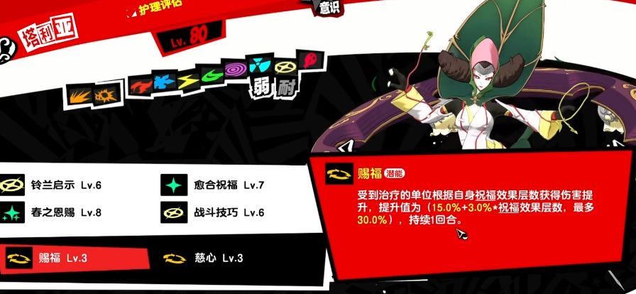 宫下美波是祝福属性的救援角色,能够治疗同伴,为团队提供恢复能力。美波的被动是赐福,赐福会根据受到治疗单位身上的祝福层数给队友提供增伤。