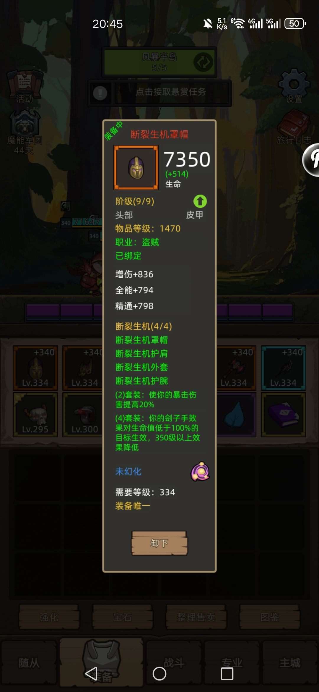 注意:项链一定要使用魔颅,因为他绿字的攻强光环自身也享受!一共是恐怖的1336点攻强