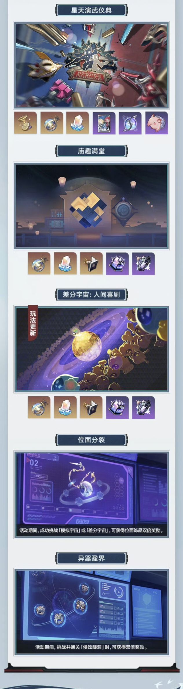 ⭕活动:「星天演武仪典」「庙趣满堂」「差分宇宙:人间喜剧」位面分裂
